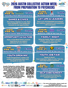 Austin Collective Action Week is a series of events hosted by local organizations that help young people learn skills, build confidence, and find opportunities for their future. Not every opportunity starts with a job application—but every job requires preparation, exposure, and support.