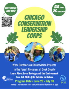 Work outdoors on conservation projects in the Foest Preserves of Cook County. Learn about local ecology and the environment. Earn job skills and be outside in Nature! Apply by April 19th.